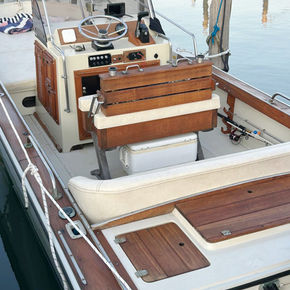 ACCESSORI: Ecoscandaglio, Radiostereo, Telo nuovo, Impianto elettrico nuovo, Tendalino, Cuscineria completa in ottime condizioni, filtro decantatore, pompa di sentina, luci di via, plancetta poppa con scaletta bagno.